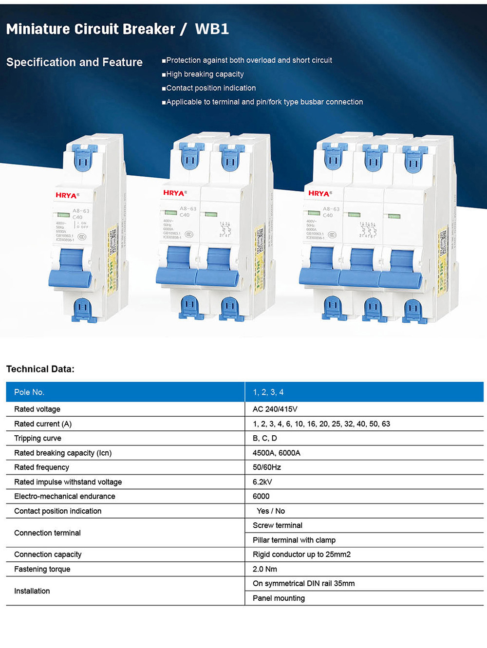 下一个:Miniature Circuit Breaker/HRYA2